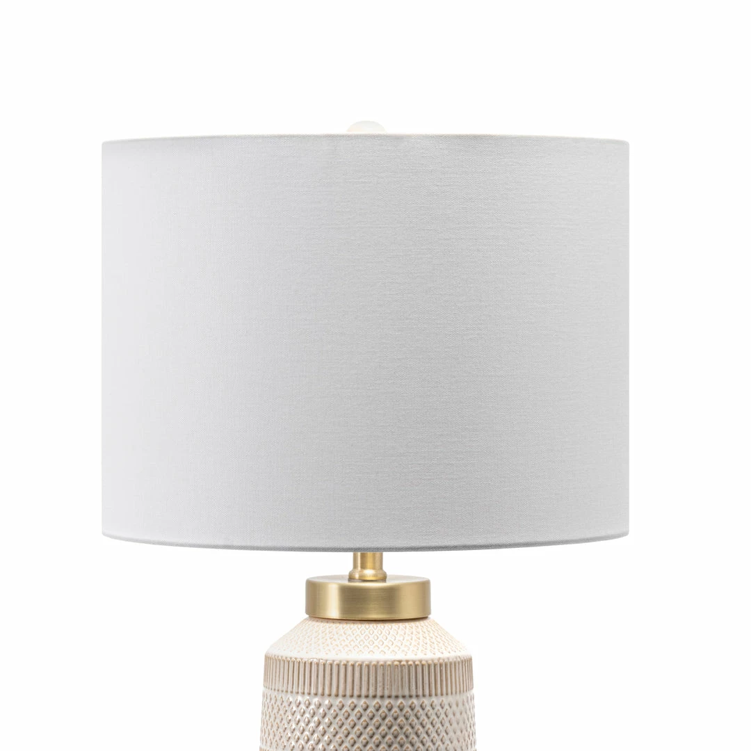 Illuminate your space with a touch of contemporary style. Warm and luminous, with a beautiful modern ceramic base, this lamp will make a refreshing and stylish addition to your space. A tall stacked silhouette allows this lamp to fit easily on your table, desk, or nightstand.