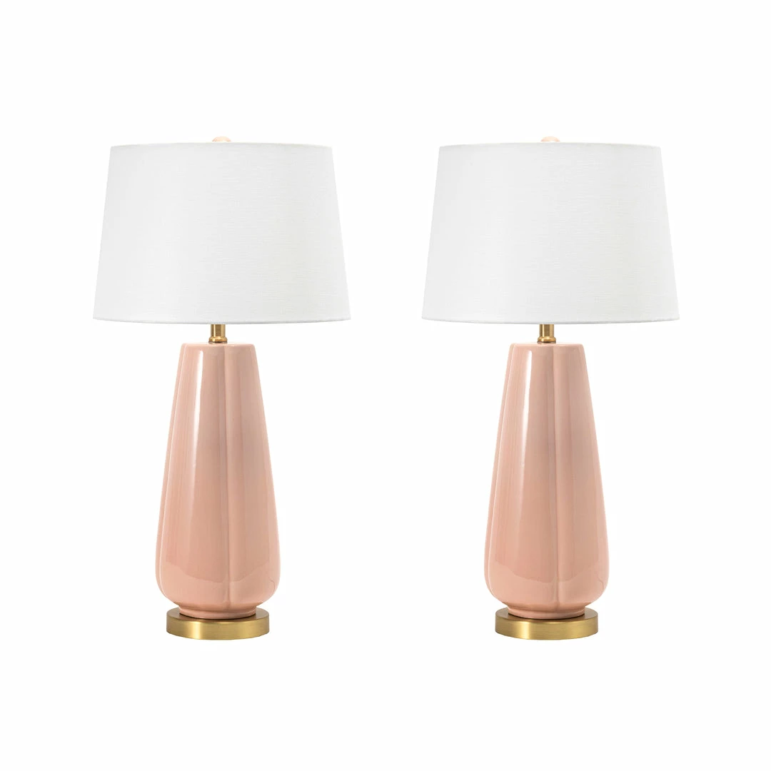 Let your room shine with the addition of this glam, 28-inch high, ceramic table lamp. It has a white fabric tapered shade that delivers ambient lighting and will add a vibrant flair to any room.
