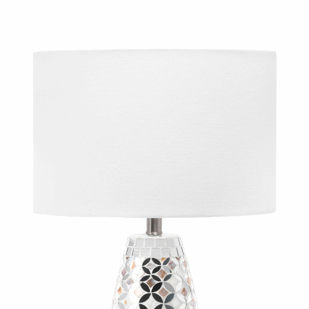 Enrich the look of any tabletop with this beautifully crafted traditional table lamp. The 27-inch tall teardrop shaped base will fit easily onto your table, desk, or nightstand. A simple fabric drum shade pops on the top of this lamp easily, creating a balanced look with diffused light.