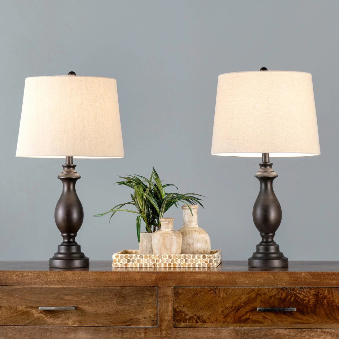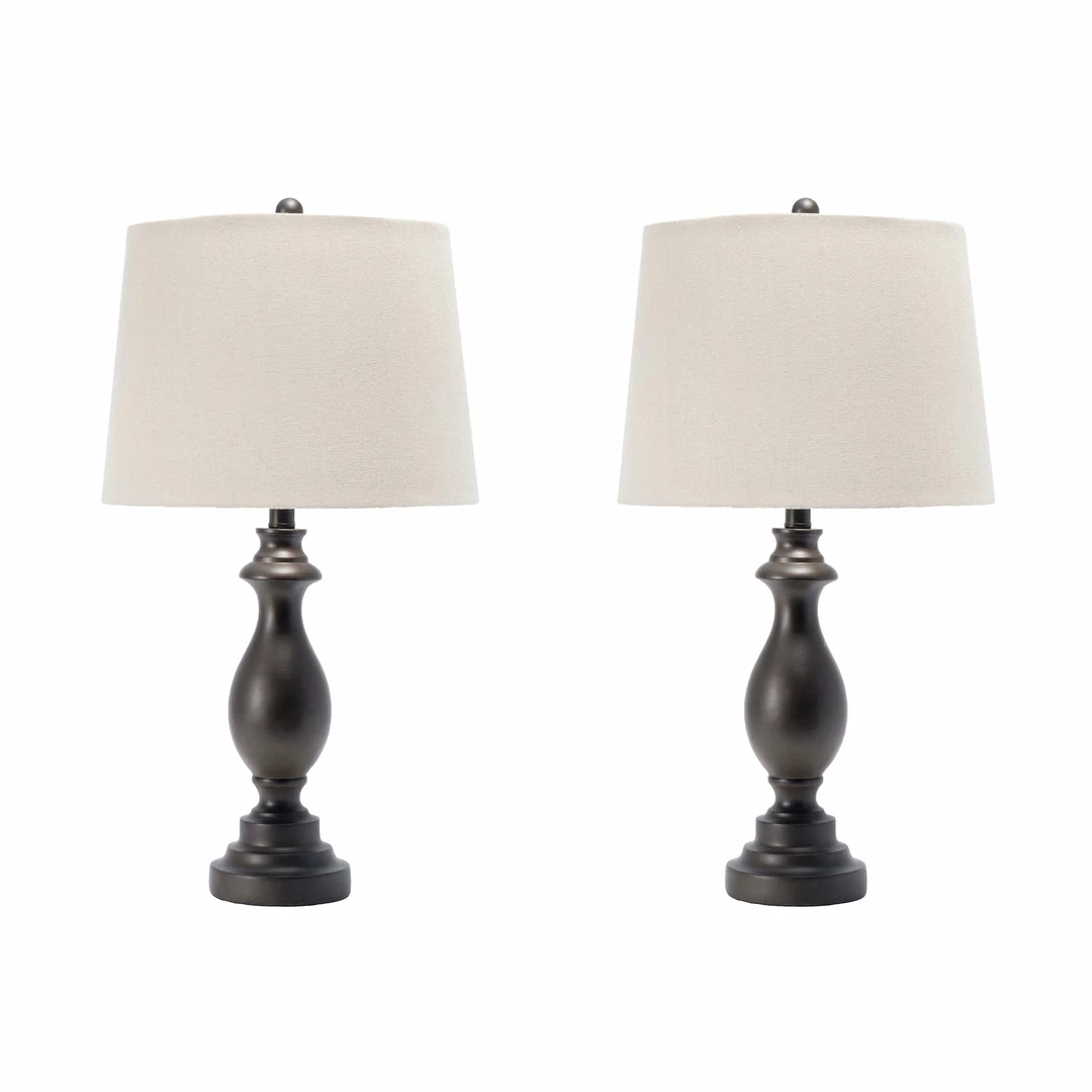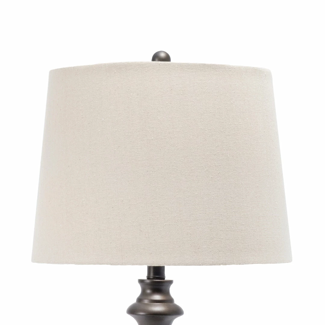 Light up your living space with this traditional style lamp set. Crafted of durable metal, the lamp’s stacked base provides a sturdy structure to ensure years of use. The cloth empire shade perfectly diffuses ample lighting, and the convenient rotary switch makes the lamps easy to control. This set of two will help balance out your nightstands or end tables.