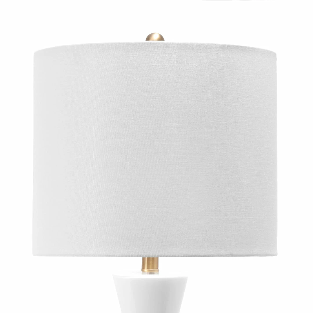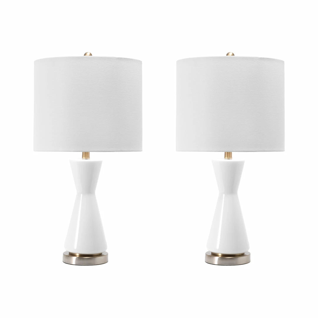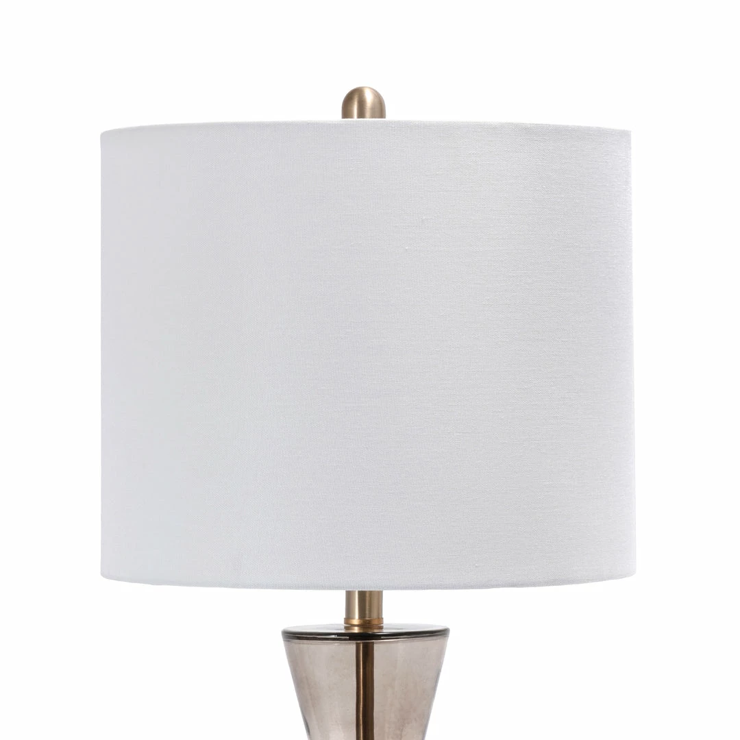 Warm and luminous, with a modern hourglass base, this lamp will make a refreshing and stylish addition to your space. The cloth shade diffuses the light beautifully for ample illumination, and the glass body provides a sturdy base.