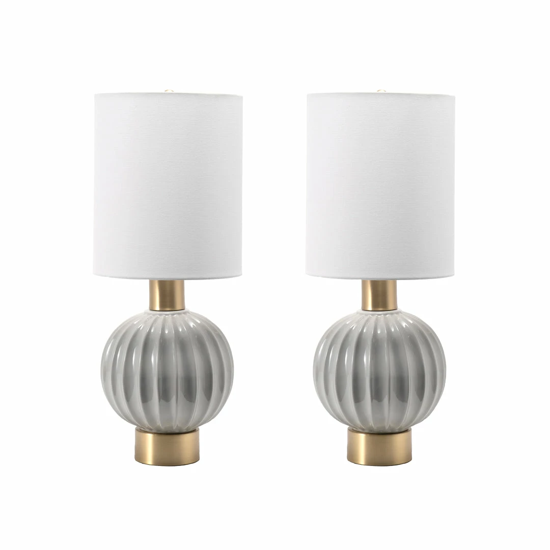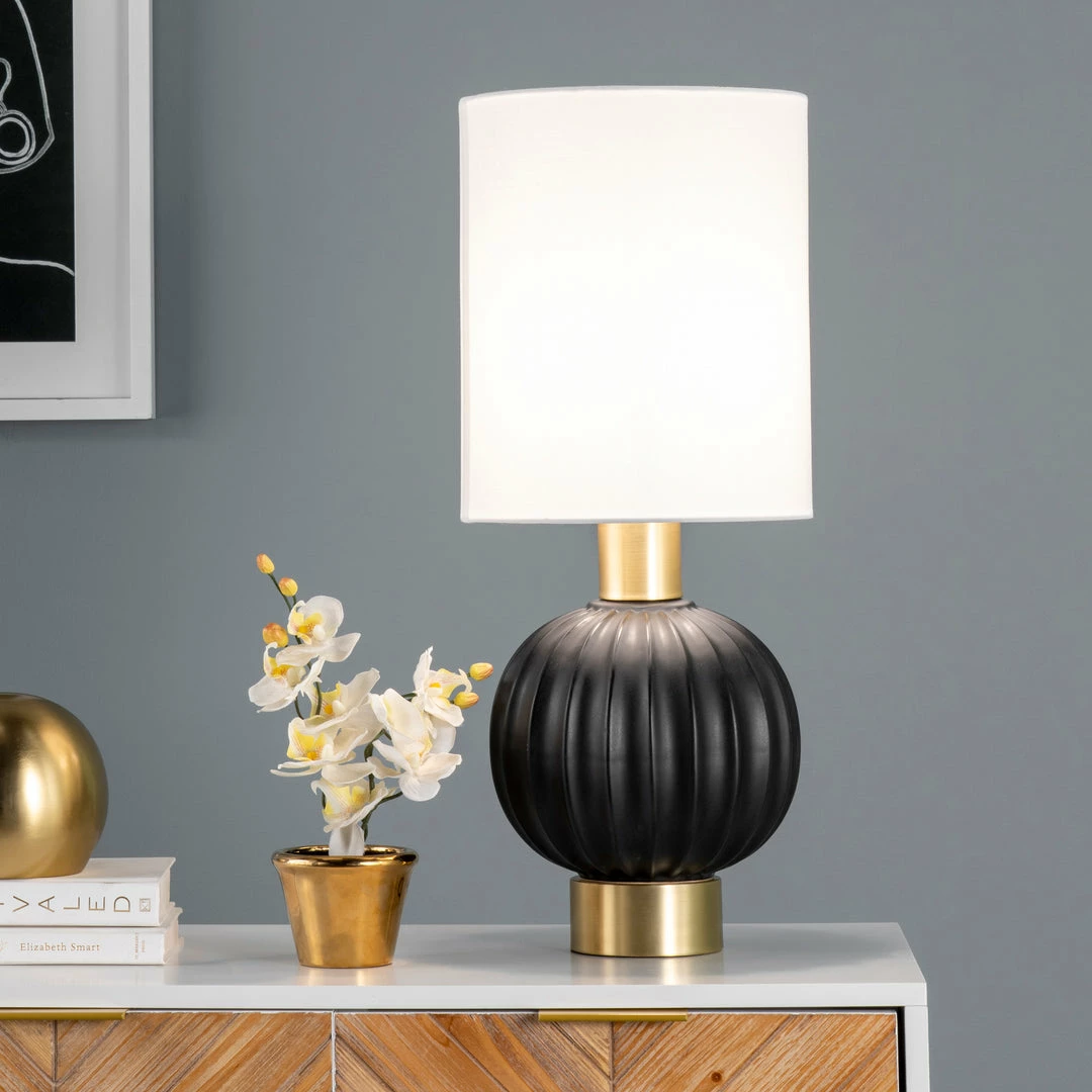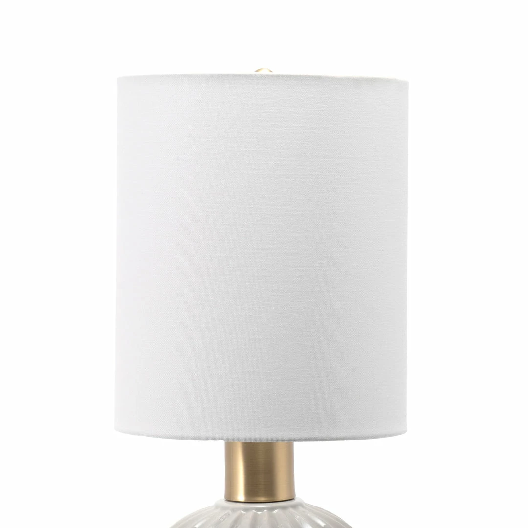 Let your room shine with the addition of this modern, 25-inch high, ceramic table lamp. It has a white fabric cylinder shade that delivers ambient lighting and will add a vibrant flair to any room.
