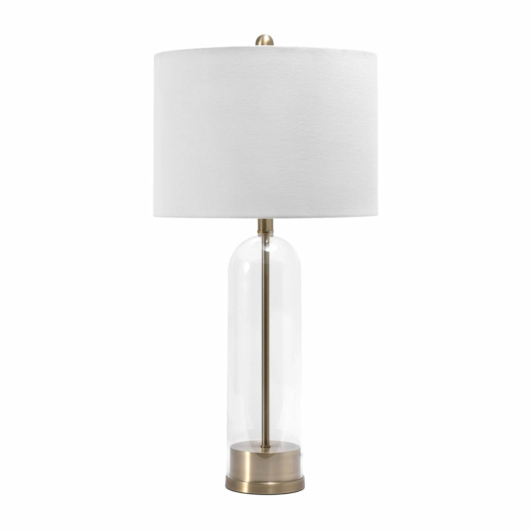 Illuminate your space with a touch of transitional style. Warm and luminous, with a beautiful glass pillar base, this lamp will make a refreshing and stylish addition to your space.