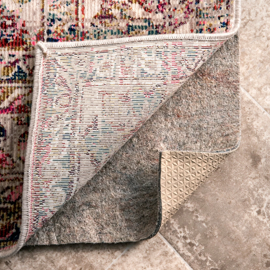 This Eco-Friendly, Green Label Plus Certified, thick rug pad is the perfect comfortable foundation for your rug. It safe for different surfaces and will help protect your floors while also keeping your rug in place. Rug pad should be placed with the fiber side up when used on hard surfaces and should be flipped over when used on carpet. Includes Non-Skid Rubber backing.