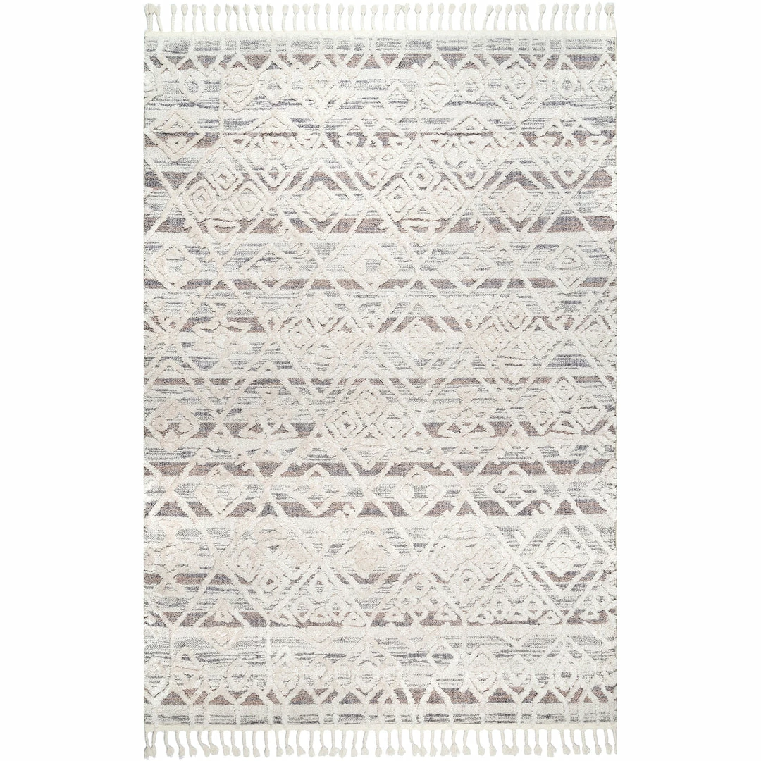 Dynamically textured pattern with highs and lows. Machine made in Turkey of silky soft polyester, each piece offers a neutral color palette that will fit seamlessly in virtually any decor scheme.