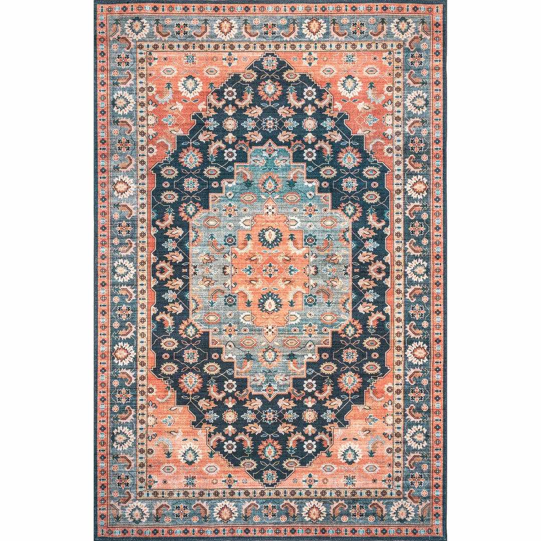Add a pop of color to your space with our persian medallion machine washable area rug! Created from sustainably-sourced, premium recycled synthetic fibers, this washable area rug is made to withstand regular foot traffic. Our machine-washable collection is functional and stylish to keep up with your busy lifestyle. Simply roll your rug up, throw it in the washing machine, and you’re done! Enjoy every part of your home with our pet-friendly and easy to clean area rugs.