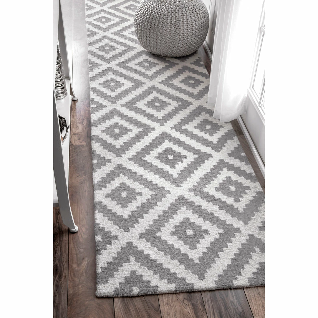 Inspired by Scandinavian textiles, this rug features a bold yet simplistic diamond graphic that instantly draws the eyes. Handmade of wool in India, this naturally durable fiber is an ideal foundation for your frequently trafficked areas.