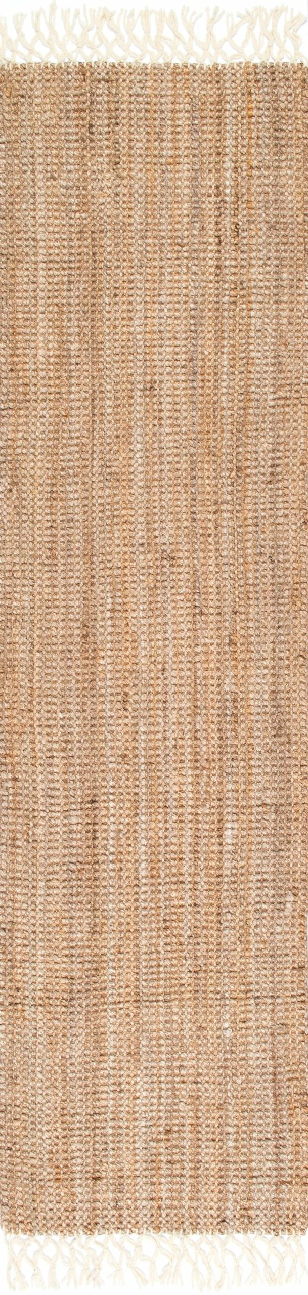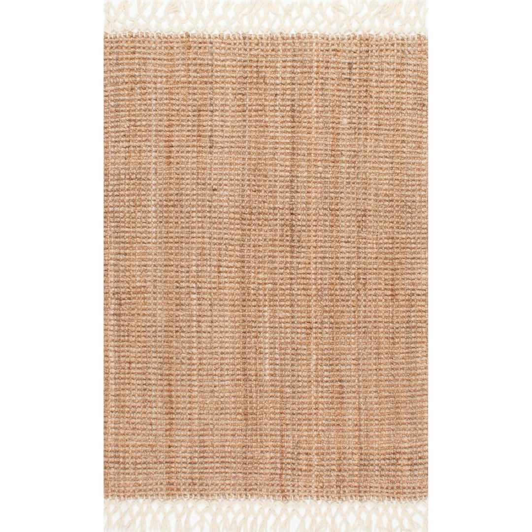 Hand crafted of jute in India this rug is the perfect addition to cottage, farmhouse, or coastal décor. Complete with intricate wool fringe detailing on either end.