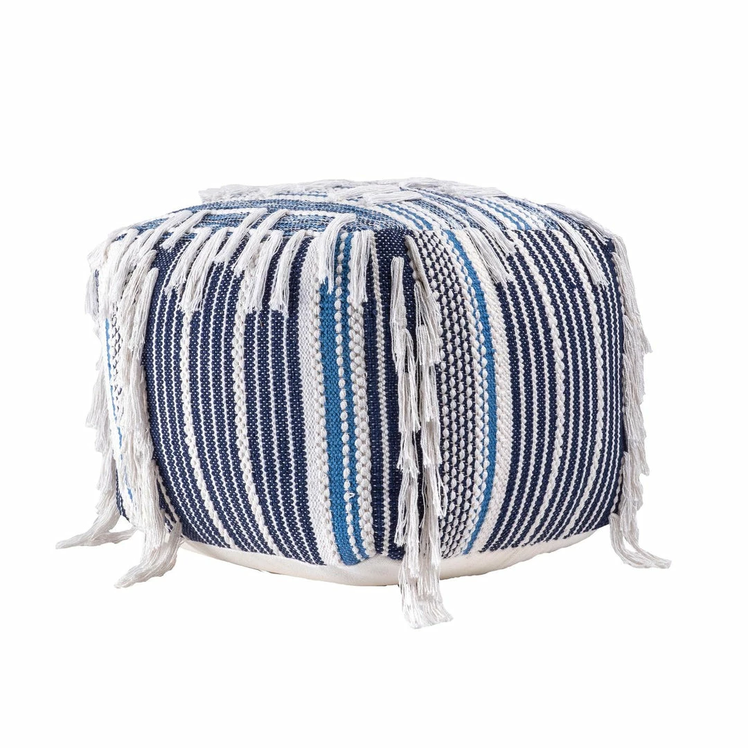Buy ✨ nuLOOM Hydra Denim Striped Fringe Filled Ottoman Pouf ⭐