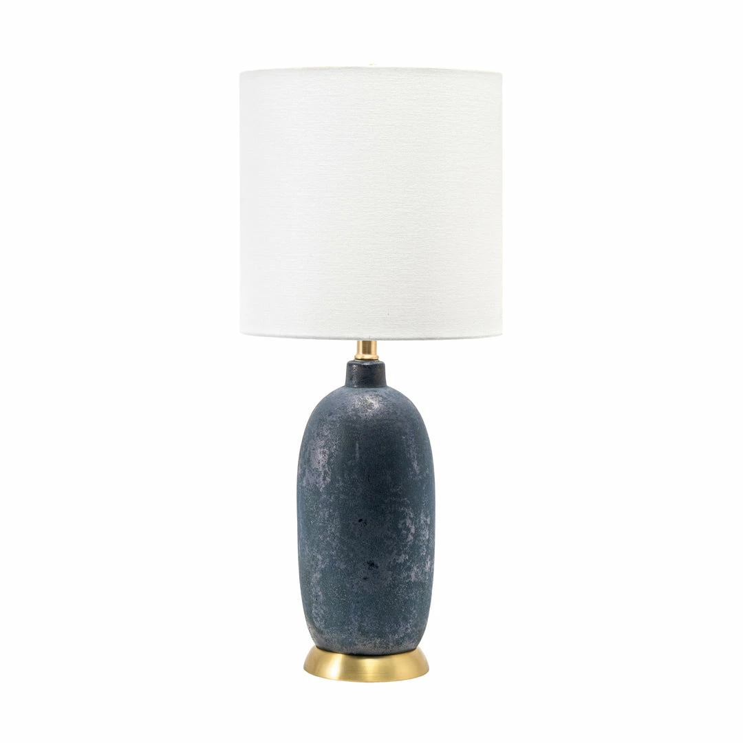 Illuminate your space with a touch of contemporary style. Warm and luminous, with a beautiful modern ceramic base, this lamp will make a refreshing and stylish addition to your space. A tall pillar shaped silhouette allows this lamp to fit easily on your table, desk, or nightstand.