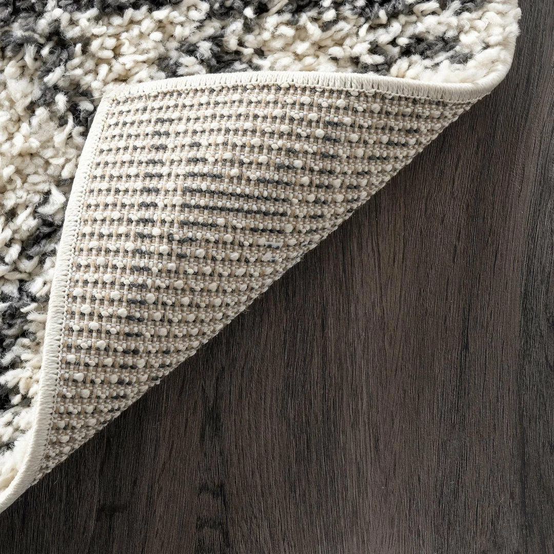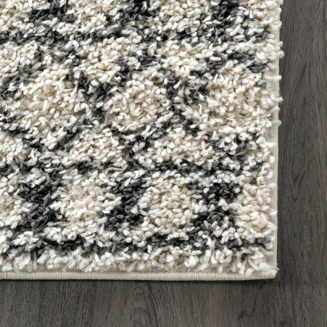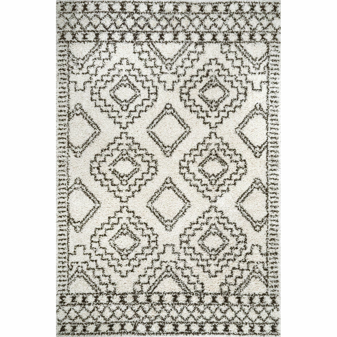 Modern, edgy style combined with traditional Moroccan accents make this rug shine. This rug boasts a cozy shag pile perfect for your bedroom or low traffic living room.