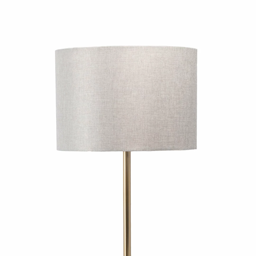 Illuminate any area in your home with this modern torchiere base floor lamp. A cloth drum shade tops the lamp and diffuses the perfect amount of lighting.