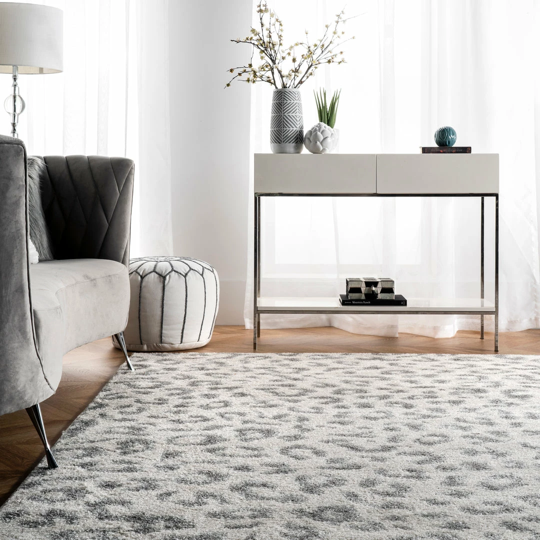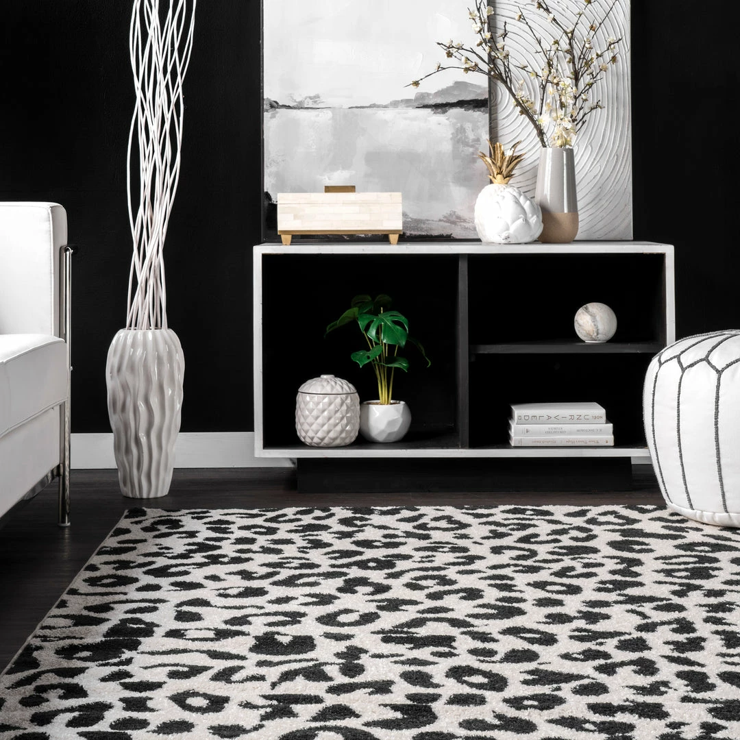 Take a walk on the wild side with this strikingly designed leopard print rug. Create a cohesive look in your living room or bedroom by pairing printed pillows with this rug. Glass topped tables and gold furnishings add an elegant touch to your space.