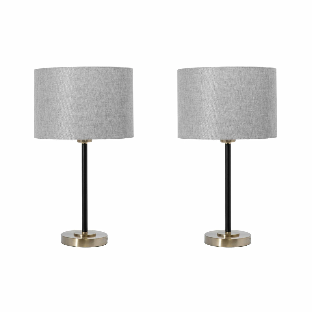 Light up your living space with this contemporary style lamp set. Crafted of durable metal, the lamp’s torchiere shaped base provides a sturdy structure to ensure years of use. The cloth drum shade perfectly diffuses ample lighting, and the convenient on-off inline switch makes the lamps easy to control. This set of two will help balance out your nightstands or end tables.