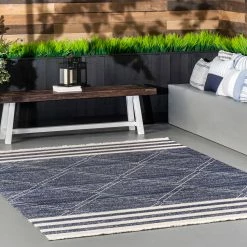 Whoever said beautiful floor accents are only for inside the home hasnβt yet met an indoor/outdoor rug. This coastal style rug is the perfect addition to your home with its nautical color combination. Water and fade resistant this rug is built to last even outdoors.