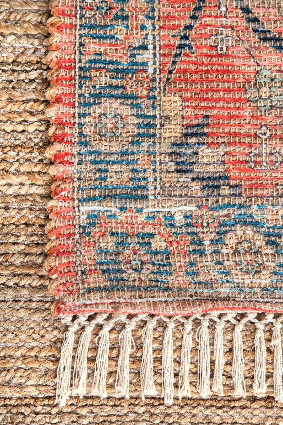 Artfully handwoven by artisans in India, this rug embodies classic Persian design. The blend of surface dyed jute and polyester fibers give this the look of a vintage market find.