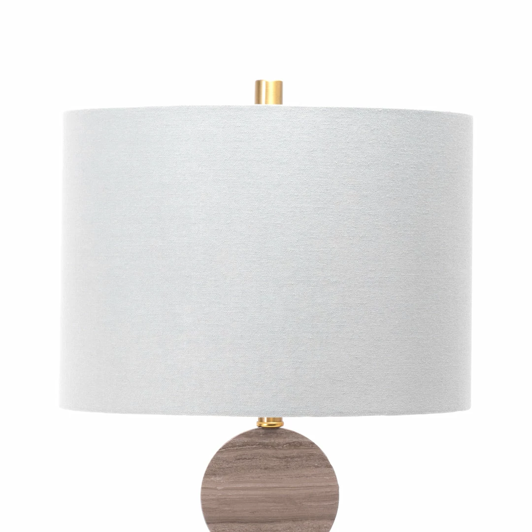 Top off a side table with a decorative coastal style table lamp. A 27-inch tall marble stacked base will fit easily onto your table, desk, or nightstand. A simple fabric drum shade pops on the top of this lamp easily, creating a balanced look with diffused light.