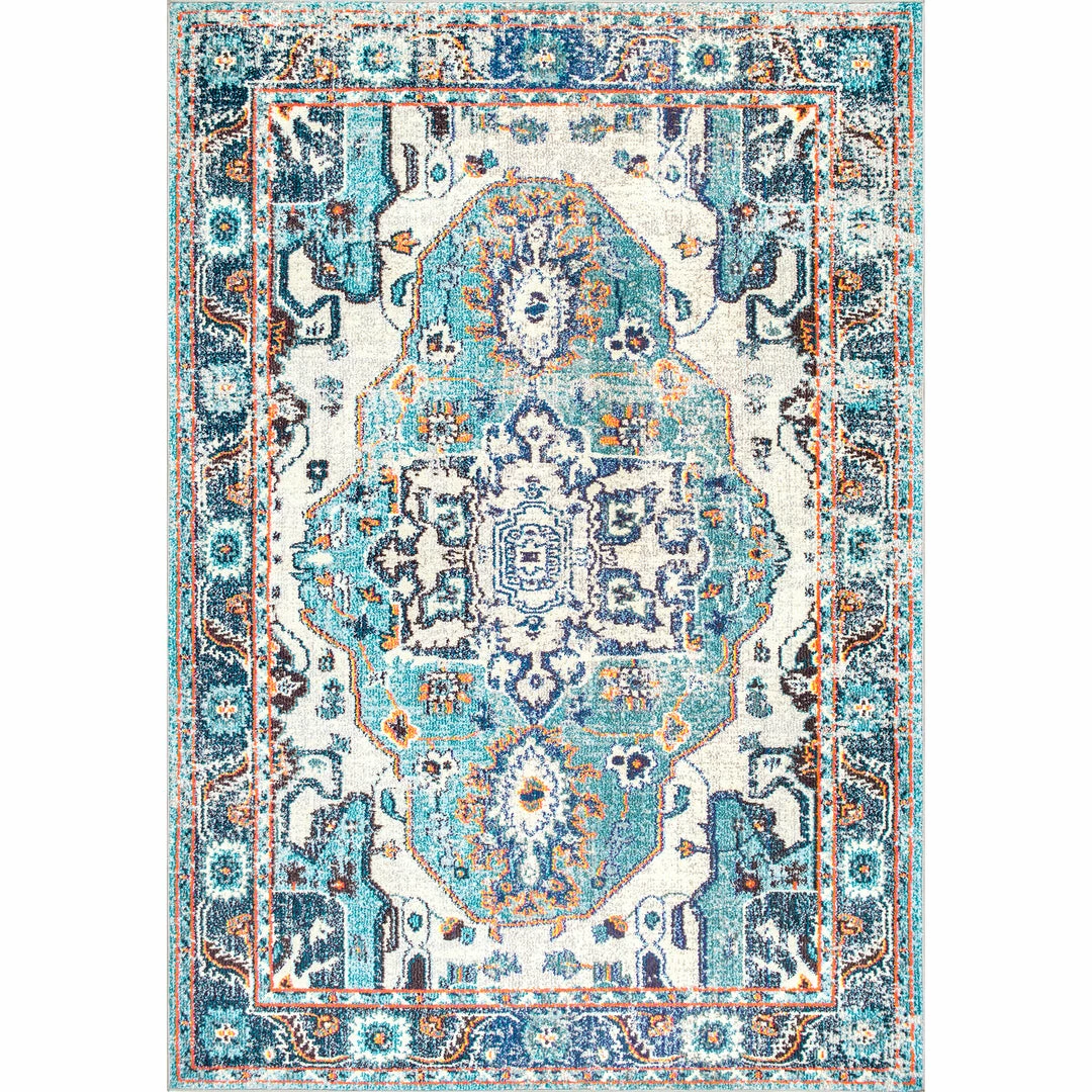 Elevate your space with the beautifully distressed, antique look of this medallion patterned rug. The soft and silky texture adds an instant touch of luxury anywhere you place it.