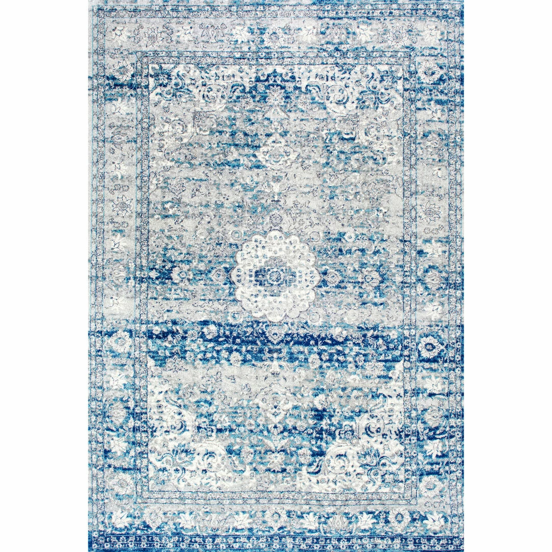 This subtly distressed medallion blends a classic traditional pattern with an updated style and functional comfort. This design is available in a wide array of colors to suit your aesthetic.