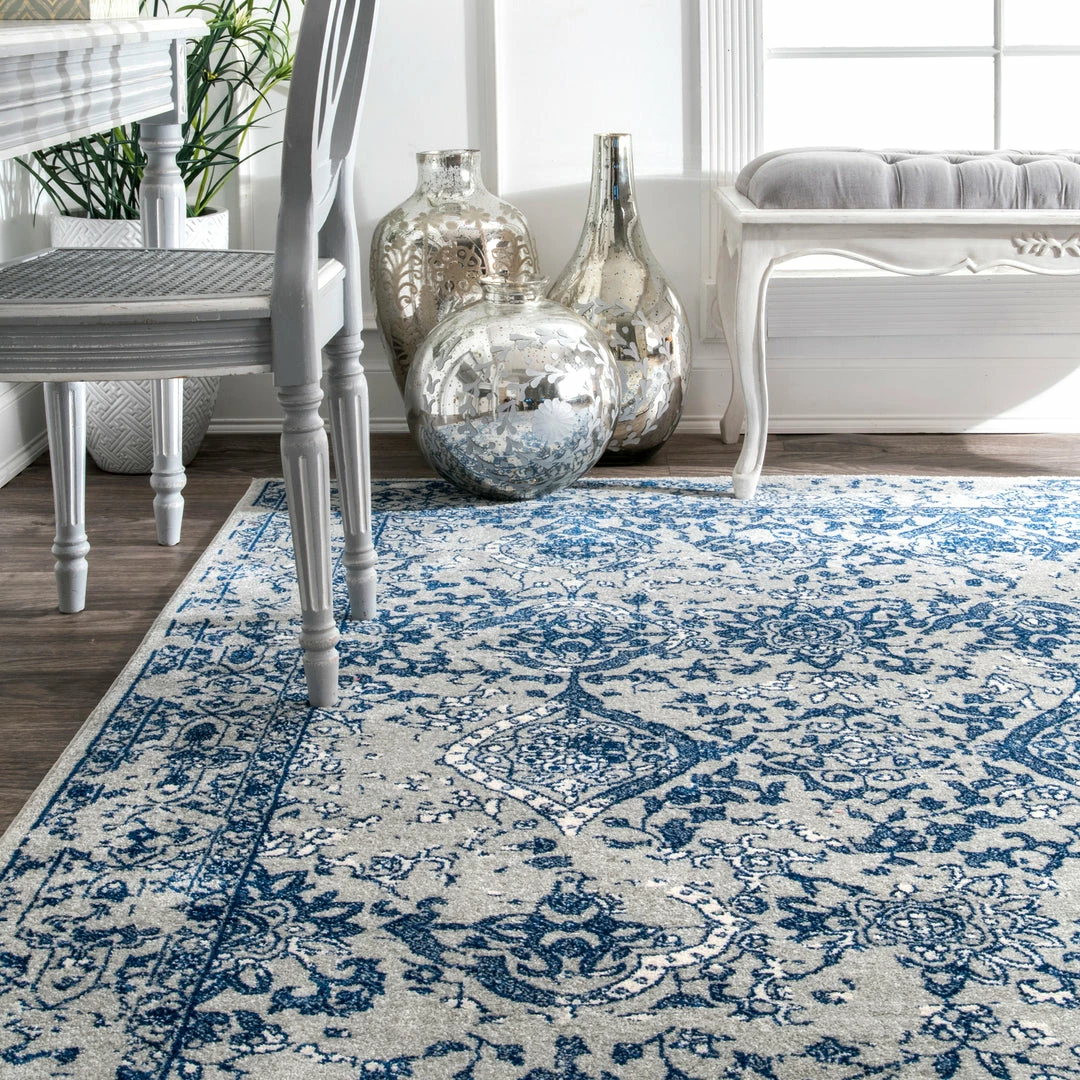 This intricate distressed floral design is the perfect centerpiece for your room. Machine made of durable polypropylene, you will have the refined look of a heirloom piece with the easy upkeep of a synthetic fiber. This design is available in a wide array of colors to suit your aesthetic.