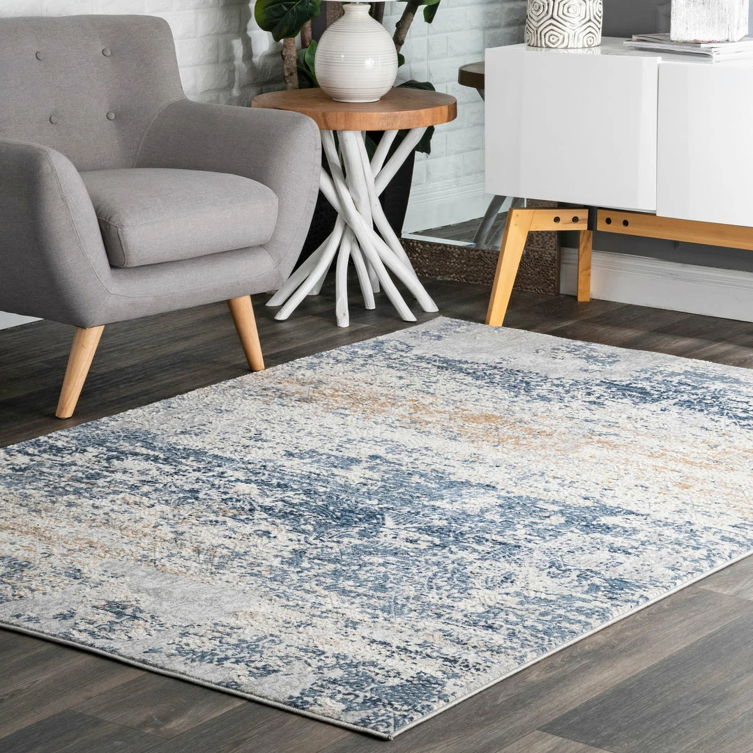 Unique distressed patterns are what make this collection so desirable. Machine made from durable, easy to clean polypropylene fibers, each piece features a beautiful abstract design.